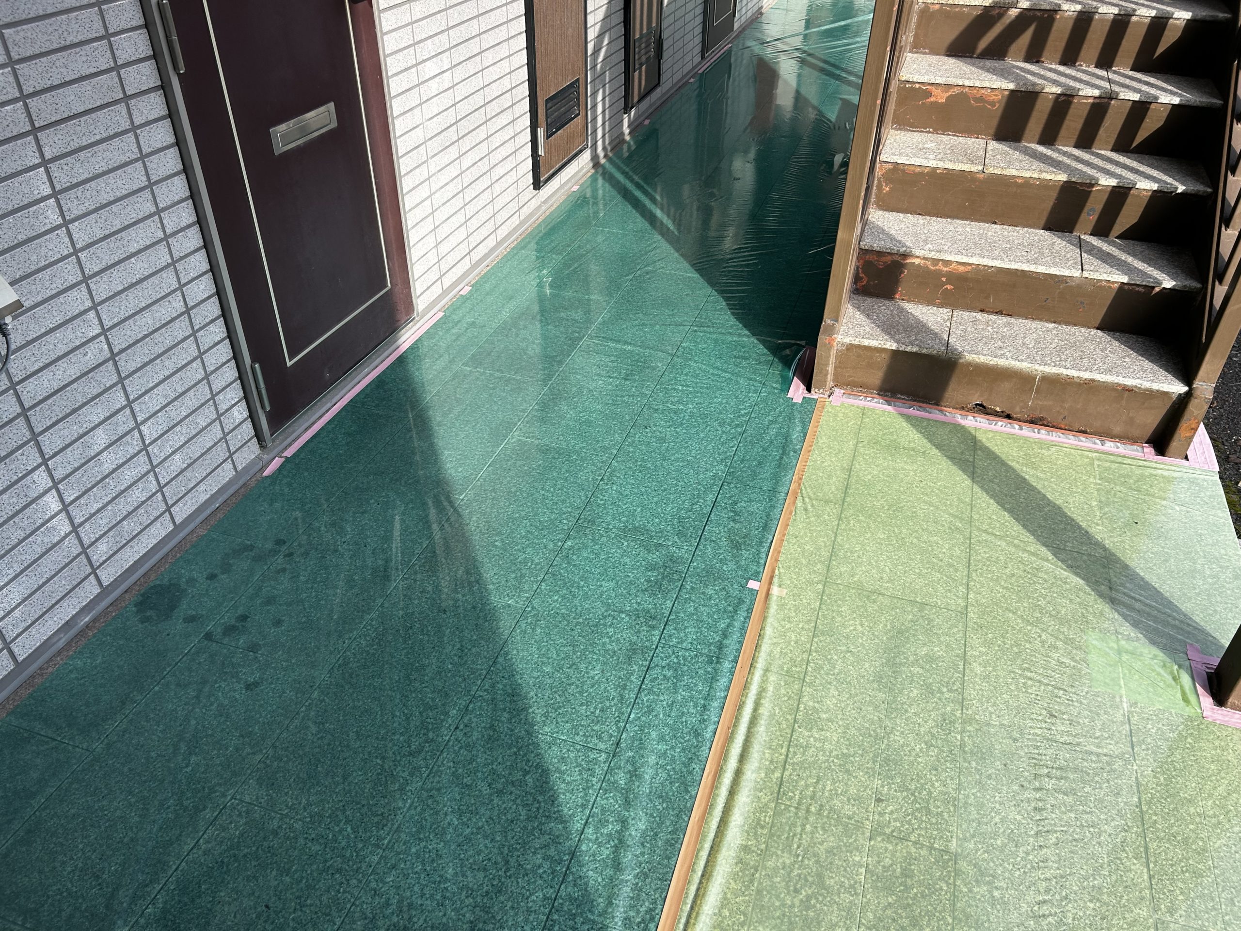 本日より、兵庫県丹波市にてアパートの階段塗装工事を開始いたしました。仕事始めとなる本日は、S様邸(ハイツ)での施工となります。